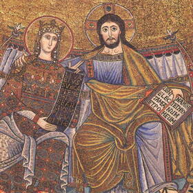 BXVI: "This is the root of today’s feast: Mary is Queen because she is associated in a unique way to her Son, both on the earthly pathway and in the glory of Heaven. The great saint of Syria, Ephrem the Syrian, affirms, concerning the royalty of Mary, that it derives from her motherhood: she is Mother of the Lord, of the King of kings (cf Is 9, 1-6) and shows us Jesus as our life, salvation and hope. The Servant of God Paul VI recalled in his apostolic exhortation Marialis Cultus: “In the Virgin Mary everything is relative to Christ and everything depends on him: it is for him that God the Father, from all eternity, has chosen her as all holy Mother and has adorned her with gifts of the Spirit, granted to no one else” (n 25).