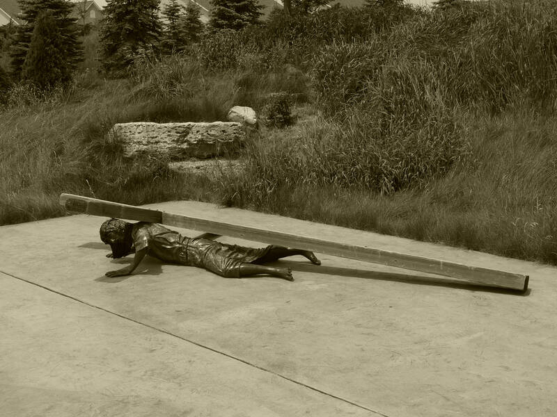 Here in the dust of the earth lies the Condemned One. Crushed by the weight of his Cross. His strength drains away from him more and more. But with great effort he gets up again to continue his march.