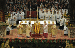 Many of you will have noticed that the last Public Consistory for the Creation of Cardinals, held in November 2007, was also celebrated on the eve of the Solemnity of Christ the King. Three years have passed, thus, in accordance with the liturgical cycle for Sundays, the Word of God comes to us through the same biblical readings for this important Feast. It takes place on the last Sunday of the liturgical year and, at the end of the itinerary of faith, presents to us the royal Face of Christ, as the Pantocrator in the apse of an ancient basilica. This coincidence asks us to meditate deeply on the ministry of the Bishop of Rome and on the ministry of the Cardinals linked to it, in the light of the unique Kingship of Jesus, Our Lord.