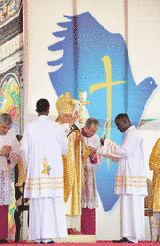 Dear brothers and sisters, everyone who has received this marvellous gift of faith, this gift of an encounter with the risen Lord, feels in turn the need to proclaim it to others. The Church exists to proclaim this Good News! And this duty is always urgent! After 150 years, many are those who have not heard the message of salvation in Christ! Many, too, are those who are hesitant to open their hearts to the word of God! Many are those whose faith is weak, whose way of thinking, habits and lifestyle do not know the reality of the Gospel, and who think that seeking selfish satisfaction, easy gain or power is the ultimate goal of human life. With enthusiasm, be ardent witnesses of the faith which you have received! Make the loving face of the Saviour shine in every place, in particular before the young, who search for reasons to live and hope in a difficult world!