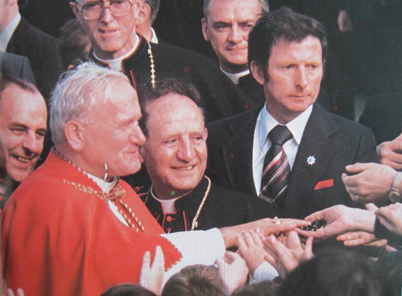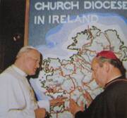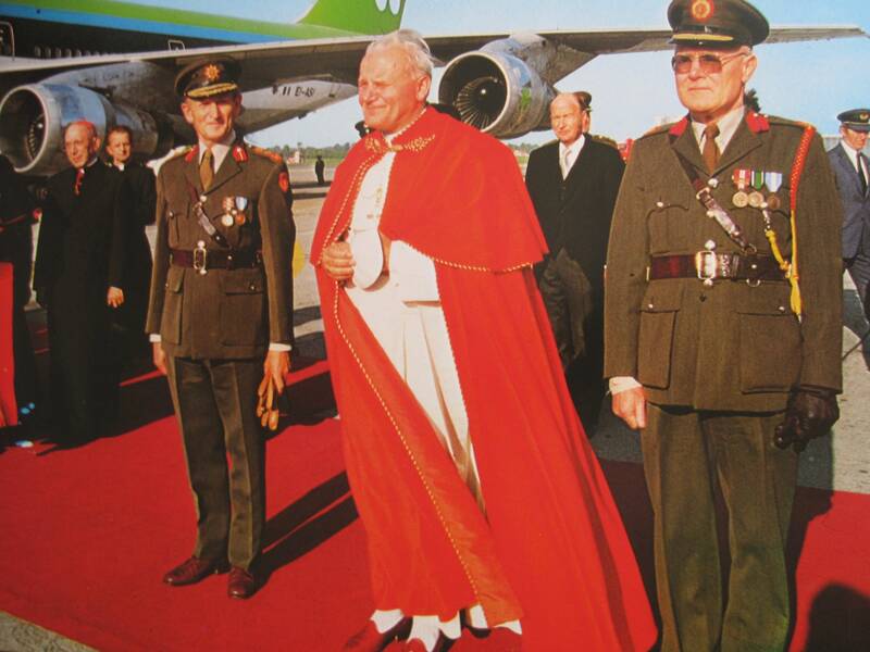 Pope St John Paul II was a pilgrim to Ireland for the centenary celebrations of the Marian Shrine of Knock. It was the first leg of his third apostolic journey, on which he also visited the United Nations and the USA. The trip was organised with only a couple of months notice and came at a time of great friction in Ireland, just a month after the killing of Lord Mountbatten (his grandson & 2 others) by an IRA bomb on his fishing boat in County Sligo.