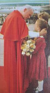 After the welcoming ceremony in Dublin on the Feast of the Archangels Saints Michael, Gabriel & Raphael, John Paul II celebrated Holy Mass in Phoenix Park and then in Drogheda and met with the Irish President, the Irish Government, the Diplomatic Corps, with representatives of other Churches, the Social Communication professionals and ended the day with Catholic Bishops visiting Ireland. Sunday 30th September began with the Polish community before a visit to Clonmacnois; JPII was then welcomed in Galway before celebrating Mass with young people. He met with people working at the Shrine of Knock, before celebrating Mass there and again ended his day with Irish Bishops. On the Feast of St Therese of Lisieux, JPII celebrated Mass in Limerick and met with seminarians and priests, religious & missionaries in Maynooth, before bidding a farewell to Ireland.