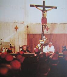 As we meet in this sacred place to begin our work, we see before our eyes the upper room in Jerusalem, where the Eucharist was instituted. After the Lord's Ascension the Apostles returned to the same upper room in order to devote themselves to prayer, together with Mary, the Mother of Christ, and so prepare their hearts to receive the Holy Spirit at the moment of the Church's birth. That is also why we have come here. We also are awaiting the descent of the Holy Spirit, who will make us see the paths of evangelization by which the Church must continue and must be reborn in this great continent of ours. We also wish today and in the days ahead to devote ourselves to prayer with Mary, the Mother of our Lord and Master — with you, Mother of hope, Mother of Guadalupe.