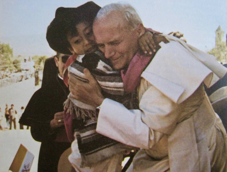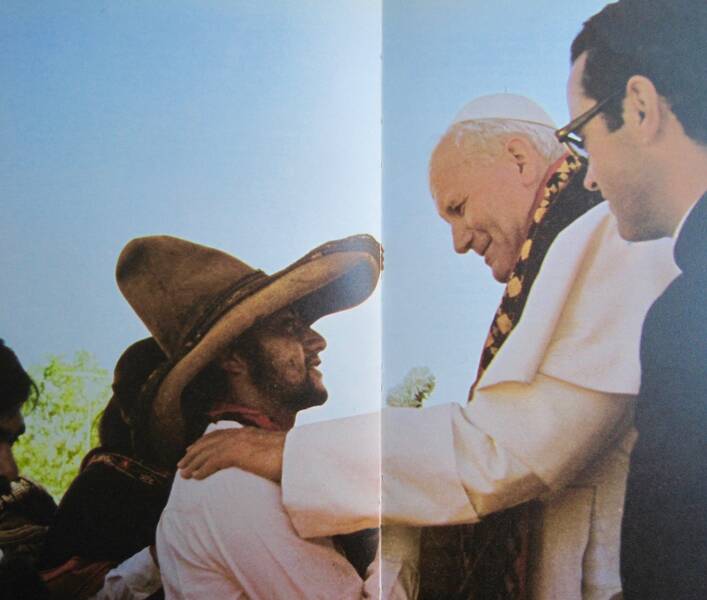 Papa San Juan Pablo II was a pilgrim to Mexico for the first time in 1979 to visit Our Lady of Guadalupe and participate in the Third General Conference of the Latin American Episocopate. It was his first apostolic journey, during which he also visited the Dominican Republic & the Bahamas. JPII returned to Mexico in 1990, 1993, 1999 & 2002.