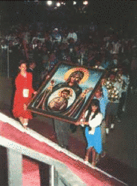 Presso la cattedrale dell’Immacolata Concezione il vostro pellegrinaggio vi condurrà all’icona di Nostra Signora del Nuovo Avvento. Maria, la Madre del Redentore, fu la prima e la migliore discepola del Figlio suo. Ella sarà presente ad ogni stadio del nostro pellegrinaggio. È la guida migliore che possiamo avere, poiché ci conduce a Cristo dicendoci: "Fate (tutto) quello che vi dirà".