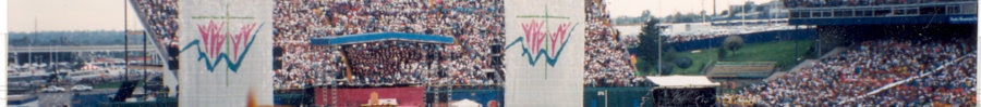 The 8th World Youth Day began in Denver for the young people on Tuesday 10th August 1993, with catecheses and talks given in different languages, Masses celebrated and prayer and adoration scheduled into the timetable. Pope St John Paul II joined in on Thursday 12th August, welcomed at Mile High Stadium in Denver, where JPII first spoke to the young people gathered from all around the world and Dana sang 'We are one body' (the official WYD song she had composed). Next day, Papa San Juan Pablo II celebrated Holy Mass with the bishops in the Cathedral of the Immaculate Conception & sent a message that was read during the Way of the Cross at Mile High Stadium. On the Saturday, JPII celebrated Holy Mass with representatives of the International Youth Forum & gave a homily at the Liturgy of the Word at the McNichols Sports Arena, before going to the Vigil of prayer at Cherry Creek State Park. On the Solemnity of the Assumption of the Blessed Virgin Mary, JPII celebrated Mass with over 1 million people. After Holy Mass, the Angelus was prayed before JPII gave his final greeting.