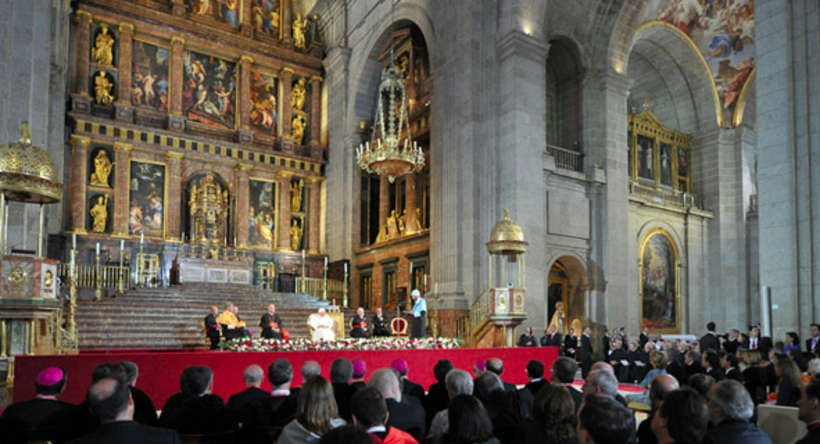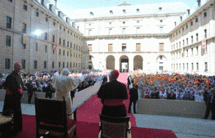 I have looked forward to this meeting with you, young professors in the universities of Spain. You provide a splendid service in the spread of truth, in circumstances that are not always easy. I greet you warmly and I thank you for your kind words of welcome and for the music which has marvellously resounded in this magnificent monastery, for centuries an eloquent witness to the life of prayer and study. In this highly symbolic place, reason and faith have harmoniously blended in the austere stone to shape one of Spain’s most renowned monuments.