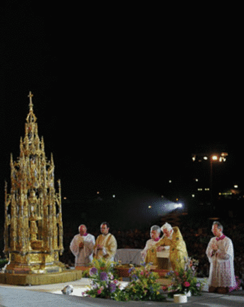 Dear young people, in these moments of silence before the Blessed Sacrament, let us raise our minds and hearts to Jesus Christ, the Lord of our lives and of the future. May he pour out his Spirit upon us and upon the whole Church, that we may be a beacon of freedom, reconciliation and peace for the whole world.
