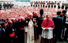 Since it is very hot, I would like to abbreviate and mention here only two of these occasions. He was able to participate, together with Peter and John, in the moment of Jesus' agony in the Garden of Gethsemane and in the event of Jesus' Transfiguration. These then are situations very different from each other: in the one case, James together with the other two Apostles experiences the glory of the Lord, he sees him in conversation with Moses and Elijah, he sees the divine splendour shining forth in Jesus; in the other case, he finds himself in front of suffering and humiliation, he sees with his own eyes how the Son of God humbles himself, making himself obedient unto death. Certainly the second experience is an opportunity for him to mature in faith, to correct the unilateral, triumphalist interpretation of the first experience: he had to glimpse that the Messiah, awaited by the Jewish people as a victor/, in reality was not only surrounded by honour and glory, but also by affliction and weakness. The glory of Christ is realised precisely in the Cross, in participation with our sufferings.